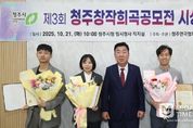 미담타임스 정인화 기자 | 청주시가 후원하고 (사)청주연극협회가 주최‧주관한 제3회 청주 창작희곡 공모전 시상식이 21일 임시청사 직지실에서 개최됐다. 이번 공모전은 한국 연극계의 새로운 목소리를 발굴하고 창작희곡의 활성화를 도모하기 위해 마련됐으며, 전국에서 다양한 소재와 형식을 담은 77편의 작품이 출품되는 등 뜨거운 관심을 모았다. 심사는 연출가, 극작가 등 연극 전문인으로 구성된 심사위원단이 맡아 작품의 완성도, 독창성, 실연성의 3개 항목에 대한 심사를 진행해 최종 3개의 작품을 선정했다. 최종 선정된 작품은 독창성이 높고 무대화의 가능성이 높다고 평가된 작품으로 대상(상금 1,500만원)은 이홍이 작가의 ‘모스크바의 바다’, 최우수상(상금 1,000만원)은 노동훈 작가의 ‘고민수의 변수 통제 시뮬레이션’, 우수상(상금 500만원)은 서준교 작가의 ‘다이치’에 영광이 돌아갔다. 수상작들은 저작권 계약을 맺고 청주 극단에 공연 제작 우선권을 지원하게 된다. 상을 수여한 이범석 청주시장은 “창작희곡은 한국 연극의 뿌리를 지탱하는 중요한 장르로, 이번 공모전을 통해 참신한 극작가들이