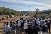 미담타임스 김준완 기자 | 상주시는 지난 16일 중동면 죽암리 강창교 일원에서 시설(토목)직 공무원을 대상으로 ‘강창교 자연재해위험개선지구 정비사업’ 현장 기술견학을 실시했다. 이번 견학은 대규모 교량 건설사업의 핵심 공정인 기초 시공기술에 대한 이해를 높이고, 현장 중심의 품질‧안전관리 역량을 강화해 상주시 건설행정의 전문성을 한층 높이기 위해 마련됐다. 이날 견학의 핵심은 낙동강의 깊은 암반층을 굴착하는 RCD(Reverse Circulation Drilling, 역순환 굴착) 공법 시연이었다. 참석한 50여 명의 시설(토목)직 공무원들은 가설교량 위에서 교각(P6, P7) 구간의 대구경 기초말뚝 굴착 과정을 직접 참관하며, 수중 시공 시 요구되는 수직도 확보, 슬라임 제거, 굴착 안정성 관리 등 고난도 시공기술에 대한 실무 이해를 높였다. 특히 이번 견학은 단순한 공법 설명에 그치지 않고, 실제 현장에서 품질을 확보하는 과정을 직접 확인하는 체험형 교육으로 운영돼 의미를 더했다. 참석자들은 도로 성토부의 다짐 상태를 확인하는 현장밀도 시험과 콘크리트의 시공성을 점검하는 압축 및 슬럼프 시험, 공기량 측정