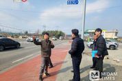 미담타임스 김준완 기자 | 울산광역시의회 공진혁 의원(의회운영위원장)은 17일 오후 2시, 울주군 온양읍 일원의 도로교통 민원 현장 3개소를 직접 방문하여 교통안전 실태를 점검하고 주민 불편 해소 방안을 논의했다. 이번 현장활동에는 울주경찰서 교통과를 비롯해 울산시 교통기획과·건설도로과 담당자들이 함께 참석하여 민원 현황 보고와 개선 방안에 대한 현장 협의를 진행했다. 이날 점검한 민원 현장은 ▲온양읍 미라주아파트 앞 삼거리(좌회전 신호 신설 요청), ▲온양읍 원동길 동천1교 인근(좌회전 신호등 위치 이동조치 요청), ▲온양읍 한양립스아파트 앞 삼거리(차로 확장 요청) 등 세 곳으로, 모두 지역 주민들이 지속적으로 불편을 호소해 온 교통 취약 지점이다. 공진혁 의원은 각 현장에서 관계 공무원 및 경찰로부터 교통 현황 보고를 청취하고 민원인 의견을 직접 확인하는 한편, 신호체계 개선 및 도로 구조 변경의 필요성과 실현 가능성을 관계기관과 즉석에서 검토했다. 공진혁 의원은 "교통 불편 민원은 시민의 일상 안전과 직결된 문제인 만큼, 탁상 검토에 그치지 않고 현장에서 직접 실태를 확인하는 것이 중요하다"