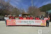 미담타임스 김준완 기자 | 석포면은 14일 태백산국립공원 입구에 위치한 대현리 열목어마을에서 면사무소 직원을 포함한 마을주민 30여명이 참여해 산불예방 캠페인 및 주변 환경정비를 실시했다. 연일 계속되는 맑은 날씨에 국립공원을 찾는 탐방객이 증가하면서 생긴 각종 쓰레기 등을 수거하고, 산불에 대한 경각심을 높이기 위해 진행된 이번 캠페인은 탐방객, 지역 농가 및 화목보일러 사용농가 등을 직접 방문 홍보함으로써 실질적인 예방 효과를 높이는 데 중점을 뒀다. 최근 대형산불의 주원인이 실화로 밝혀진만큼 작은 실수로 인한 불씨가 큰 재난로 이어질 수 있다는 지역민들의 인식전환을 주된 목표로 석포면은 다음달 중순까지 산불감시원 활동과 마을방송, 이장회의 등을 통해 논·밭두렁 및 영농부산물 소각 금지, 생활쓰레기 불법 소각 근절, 화목보일러 사용 시 화재 예방 수칙 준수 등을 지속적으로 홍보 및 점검을 강화할 계획이다. 이날 캠페인에서 박정호 석포면장은 “농번기 바쁜 시기에 자발적으로 참여해주신 주민분들께 감사드리며, 석포면의 아름다운 자연환경을 보호하고 산불로 인한 주민들의 소중한 인명, 재산 등의 피해가 발생하지 않도