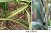 미담타임스 김준완 기자 | 충북농업기술원은 최근 고온 뒤 저온·강우가 반복되면서 한지형 마늘 잎마름병 발생 위험이 커지고 있다며, 안정적인 생육과 수량 확보를 위해 4월 중순 보호제 위주의 예방 방제를 농가에 당부했다. 최근 충북 지역은 낮 기온이 25℃ 안팎까지 오른 뒤 다시 기온이 낮아지고 비가 이어지는 등 변동성 큰 날씨가 계속되고 있다. 고온기에 생육이 급격히 진행된 뒤 저온과 강우가 겹치면 포장 습도가 높아지고 잎 표면에 수분이 오래 남아 병원균 침입이 쉬워진다. 기온이 15~20℃ 수준으로 유지되면 잎마름병 발생은 빠르게 늘어날 수 있다. 잎마름병은 마늘 재배에서 발생 비율이 높은 주요 병해로, 초기 방제가 늦어지면 단기간에 확산돼 수량 감소로 이어질 수 있다. 배수가 불량한 포장이나 질소질 비료 과다 시용, 밀식 재배처럼 통풍이 나쁜 조건에서는 발생 위험이 더 크다. 현장에서는 증상이 나타난 뒤 방제에 나서는 경우가 많지만, 병 발생 이후 치료제에 의존하기보다 보호제 중심의 예방적 약제 살포가 효과적이다. 보호제는 잎 표면에 보호막을 형성해 병원균 침입을 사전에 차단하여 방제 효율이