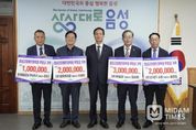 미담타임스 정인화 기자 | 음성군은 지난 20일 군수 집무실에서 관내 5개 기업체가 1000만원 상당의 후원금품을 음성군장애인체육회(회장 조병옥)에 기탁했다고 밝혔다. 이번 기탁에는 △(주)제일참 300만원 △(주)21세기소방 200만원 △(주)창영케미칼 200만원 △성본산업단지(주) 라면 등(200만원 상당) △은찬종합건설(주) 100만원 등 총 5개의 기업이 후원금품을 전달했다. 기탁받은 후원금품은 장애인 체육시설 개선, 훈련비 지원, 장애인 체육 프로그램 지원 등 음성군 장애인 체육 발전을 위해 사용될 예정이다. 기업 대표들은 “지역 장애인 체육 활성화를 위해 기업의 사회적 책임을 다할 수 있어서 뜻깊다”며 “관내 장애인들이 체육활동을 통해 건강한 삶을 이어가고, 꿈을 키울 수 있도록 계속 관심을 가지고 지원하겠다”고 밝혔다. 조병옥 음성군장애인체육회장은 “관내 기업들의 장애인 체육 저변확대를 위한 지속적인 관심과 지원에 감사드린다”며 “기탁된 후원금은 장애인들의 체육 참여 확대와 역량 강화 등 현장 중심 지원으로 소중히 사용하고, 내년 충북장애인도민체육대회의 성공적 개최를 위해 노력하겠다”고