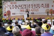 미담타임스 조혜리 기자 | 충북 단양군 적성면에서 열린 ‘제24회 금수산감골단풍축제’가 지난 19일 지역 주민과 관광객 등 1,500여 명이 참여한 가운데 성황리에 막을 내렸다. 이번 축제는 금수산감골단풍축제추진위원회가 주관하고 단양군이 후원했으며, 금수산의 수려한 단풍 절경과 감골 감나무길을 배경으로 다채로운 볼거리와 체험행사가 마련돼 가을 정취를 한층 더했다. 이날 축제는 금수산 산행 행사를 시작으로 산신제, 개막식, 축하공연, 체험부스 운영 등이 이어지며 방문객들의 뜨거운 호응을 얻었다. 특히 특별 이벤트로 진행된 ‘금 한돈을 잡아라’와 ‘도전! 금수산 최강 산악회’가 큰 인기를 끌었으며 오색 염색 체험, 단풍잎 책갈피 만들기, 떡메치기 등 가족 단위 체험 부스에도 많은 이들의 발길이 이어졌다. 또한 지역의 농·특산물 판매 부스에도 방문객들의 관심이 집중돼 지역경제 활성화에도 기여했다. 축제장을 찾은 한 관광객은 “도심을 벗어나 금수산의 가을 정취를 만끽할 수 있어 좋았다”며 “주민들이 직접 참여해 따뜻한 정이 느껴지는 축제였다”고 소감을 전했다. 박완수 축제추진위원장