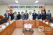 미담타임스 김준완 기자 | 울산 중구의회는 21일 오후 2시 의원회의실에서 ‘2025년 사회적 장애인식개선 교육’을 진행했다. 이날 교육은 박경흠 의장을 비롯해 중구의회 소속 의원 전원과 사무국 직원 등 35명이 참석해 장애에 대한 올바른 이해와 공감을 통해 긍정적 인식을 촉진하고 장애인에 대한 사회적 참여에 기초의회가 적극적으로 나서기 위해 마련했다. 교육은 대구사람장애인자립생활센터 채주희 전문 강사가 ‘장애인 인권과 지방의회의 역할을 함께 생각하는 시간’이라는 주제로 강의를 진행했다. 장애인이 일상 속에서 겪는 불편과 장벽을 고민해 보고 이를 극복하기 위한 정책과 제도 개선을 위해 지방의회가 해야 할 역할과 기능 등을 포괄적으로 살펴보는 시간을 가졌다. 이번 장애인식 개선교육은 장애인복지법에 따라 올해부터 지방의회는 별도의 교육 대상으로 분류돼 의무적으로 이수해야 할 법정 교육을 전환됨에 따라 중구의회에서 자체적으로 마련했다. 중구의회 박경흠 의장은 “장애는 조금 불편할 뿐이지 불행한 것이 아니라는 인식과 함께 장애인, 비장애인 모두가 우리 지역사회를 구성하는 소중한 구성원이라는 생