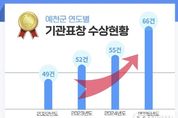 미담타임스 김준완 기자 | 예천군은 2025년 한 해 동안 중앙·광역·민간 평가 전반에서 우수한 성과를 거두며 총 66건의 기관 표창을 수상했다고 밝혔다. 이는 2022년 49건, 2023년 52건, 2024년 55건에 이어 4년 연속 증가한 실적으로, 매년 자체 최고 기록을 경신하며 꾸준한 상승 곡선을 그리고 있다. 특히 예천군은 전통적인 농촌행정 중심 구조에서 경북도청 신도시 조성에 따른 도시행정 수요까지 동시에 감당해야 하는 이중적 행정 환경 속에서도 성과를 이어가고 있다는 점에서 의미가 크다. 농업·농촌 분야의 전문성과 함께 도시 기반 행정, 복지·안전, 문화·환경 정책까지 행정 영역이 확장되는 과정에서도 군정 전반의 안정성과 실행력이 대외적으로 인정받고 있다는 평가다. 2025년 수상 내역을 살펴보면 중앙 단위 평가 20건, 광역 단위 평가 42건, 민간 평가 4건으로 고른 분포를 보였으며, 이를 통해 확보한 상 사업비는 590백만 원, 시상금은 130백만 원에 달한다. 주요 수상 실적으로는 ▲2025년 전국민 마음투자 지원사업 우수기관 ▲경상북도 지역개발사업 추진실적 평가 최