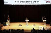 미담타임스 정주환 기자 | 이상일 용인특례시장은 2일 시청 에이스홀에서 열린 ‘제7회 장애인 문화예술 경연대회’에 참석해 장애인 예술인들의 도전과 열정을 응원했다. 이번 대회는 문화네트워크 혜윰(대표 이하영)이 주최·주관하고, 용인특례시가 후원한 행사로 장애인 예술인들의 재능 발굴과 문화예술 활동 참여 기회를 확대하기 위해 마련됐다. 현장에는 지역 장애인 단체 관계자와 장애인 가족 등 300여명이 함께했다. 이상일 시장은 축사를 통해 “어려운 여건 속에서도 문화예술에 대한 열정과 창작의 꿈을 펼치고 있는 장애인 여러분께 존경과 감사의 뜻을 전한다”며 “이번 경연대회에서 그동안 연습을 통해 쌓은 기량을 마음껏 펼치시길 바란다”고 말했다. 이 시장은 “제 꿈 중의 하나는 장애와 비장애의 장벽을 허무는 일”이라며 “서로 공감하고 배려하는 사회, 장애가 장벽이 되지 않는 사회를 모든 시민들이 힘을 모아 함께 만들어 가면 좋겠다”고 했다. 이 시장은 “지난 7월 개관한 기흥국민체육센터 공공수영장에 장애인을 위한 가족 탈의실·샤워실·화장실을 설치했고, 앞으로 조성되는 모든 공공수영장에도 같은 시설을 마련할 것
