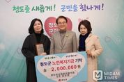 미담타임스 김준완 기자 | 청도군이 노인복지 기반 조성과 노인 단체의 건전한 육성을 목표로 설치·운영 중인 노인복지기금이 군민들의 따뜻한 관심과 온정으로 새로운 활력을 얻고 있다. 지난 12일, 청도대남병원장례식장 엄순애 대표는 “어르신들의 복지 증진에 조금이나마 도움이 되길 바란다”며 노인복지기금 200만 원을 기탁했다. 엄 대표는 이번 기탁에 앞서서도 200만 원을 기탁한 바 있어, 지금까지 총 400만 원의 기탁을 통해 지역 어르신들을 향한 나눔을 꾸준히 실천해오고 있다. 또한 평소에도 다양한 봉사활동에 적극 참여하며 지역사회 이웃사랑 실천에 앞장서고 있다. 김하수 청도군수는 “지속적인 기탁과 관심으로 노인복지기금에 힘을 보태주신 데 깊이 감사드린다”며 “군민 여러분의 따뜻한 참여가 어르신들의 복지 향상에 큰 밑거름이 되는 만큼, 앞으로도 더 많은 어르신들에게 실질적인 도움이 될 수 있도록 최선을 다하겠다”고 밝혔다.