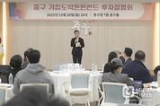 미담타임스 정주환 기자 | 서울 중구가 지난 20일 중구청에서 '중구 기업도약든든펀드 투자설명회'를 열고, 성장 잠재력이 높은 중소·벤처기업을 대상으로 투자 유치와 성장 지원 계획을 밝혔다. 이번 설명회는 중구와 펀드운용사인 비에이파트너스가 공동으로 주관했으며, 지난 8월 중구가 출자한 벤처투자조합 결성 후 225억 규모의 펀드 본격 운용에 맞춰, 유망기업을 발굴하고 기업들의 투자유치 기회를 제공하기 위해 마련됐다. 이날 설명회에는 중구 소재 기업 및 중구로 이전을 희망하는 유망기업 등 약 35개사가 참여했다. 1부 투자설명회에서는 비에이파트너스와 유진투자증권에서 펀드 운용방향과 투자 기준, 2026 벤처투자 시장 및 IPO 전망, 투자 가능성을 높이는 IR 전략 등을 주제로 강연을 펼쳤다. 2부 투자상담에서는 사전 신청을 통해 선정된 기업들이 펀드운용사와 개별 상담을 진행하며 기업별 투자 가능성을 구체적으로 논의했다. 또한 현장에는 기업홍보존이 운영되어 참여기업들의 제품 전시와 시연을 통해 기술력과 아이디어를 직접 선보였다. 이를 통해 투자자와 기업 간 교류의 장이 자연스럽게 형성되며, 지역 내