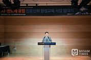 미담타임스 정인화 기자 | 강원특별자치도는 10월 15일 강원대학교 미래도서관에서 'AI․반도체 융합 전문인력 양성교육' 발대식을 개최하고 2029년까지 전문인력 450명을 양성한다고 밝혔다. 발대식에는 김진태 강원특별자치도지사를 비롯하여 주관대학인 강원대학교 정재연 총장, 참여기관인 한국전자통신연구원(ETRI) 방승찬 원장 및 한국생산성본부(KPC) 박성중 회장 등 관계 기관장이 참석해 자리를 빛냈다. 이번 'AI․반도체 융합 전문인력 양성교육'은 한국전자통신연구원(ETRI)과 한국생산성본부(KPC) 등 국내 최고 수준의 기관이 참여하는 사업으로 2029년까지 5년간 추진될 예정이다. 아울러, 도와 강원대학교, 한국전자통신연구원, 한국생산성본부는 AI․반도체 산업 생태계 조성을 위해 인적․물적 역량을 공유하고, 국비 신규사업 발굴과 기업유치 및 전문인력 양성 등을 지속적으로 추진하기로 협약을 체결했다. 10월부터 추진되는 한국생산성본부(KPC)의 'DSAC* 및 AI 시스템 반도체 Cluster ASAT' 교육은 AI 기반 데이터 사이언티스트를 효과적으로 양성하고 인공지능 시스템 반도체 응용 전