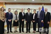 미담타임스 김교환 기자 | 김민석 국무총리는 10월 27일 오후 정부서울청사에서'티나 코텍(Tina Kotek)' 미국 오리건 주지사(민주)를 접견하고, 한국과 오리건주 간 협력 강화 방안에 관해 의견을 교환했다. 김 총리는 APEC 정상회의 주간에 한국을 찾아준 코텍 주지사 및 경제사절단을 환영한다고 하고, 금번 방한이 한-오리건 간 경제협력 및 인적 교류를 더욱 강화하는 계기가 되기를 바란다고 했다. 김 총리는 한국과 오리건주 간 농산물 등 교역이 활발하게 이루어지고 있는 점을 평가하고, 앞으로 양측간 교역뿐 아니라 투자와 인적교류 등 다양한 영역에서 협력이 심화되기를 기대한다고 했다. 이와 관련, 김 총리는 양국 간 경제협력 심화를 위해서는 기업인들의 원활한 입국 및 활동을 보장하는 것이 매우 중요할 것으로 본다고 하고, 이를 위해서 오리건 주정부 내 가능한 범위 내에서 한국과의 관계를 전담하는 코리안데스크(Korean Desk) 설치 등 주정부측의 관심과 노력을 당부했다. 코텍 주지사는 한국이 오리건주의 베리 등 최대 농산물 수출국 중 하나인 만큼 한국과의 관계를 중시하고 있으며, 향후 반도