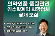 미담타임스 정주환 기자 | 경기도보건환경연구원은 오는 24일까지 ‘2026년 의약외품 품질검사 위·수탁계약’ 참여를 희망하는 제조·수입업체를 모집한다. ‘의약품 등 제조업 및 수입자의 시설기준령’에 따르면 의약외품은 품질검사를 위한 시설을 갖추고 자체 품질관리를 하거나 식약처 지정 시험검사기관과의 품질관리 위수탁 계약을 통해 품질을 관리해야 한다. 연구원은 2008년부터 매년 품질관리 위수탁 계약을 통해 품질검사 시설을 갖추지 못한 도내 소규모 의약외품 업체의 품질검사를 수행하고 있다. 지원 대상은 도내 사업을 등록한 의약외품 제조 및 수입업체이며, 품질관리 지원 분야는 보건용 마스크와 생리대 등 도민의 생활과 밀접한 의약외품이다. 제출 서류와 양식 등 모집 관련 자세한 사항은 경기도와 경기도보건환경연구원 누리집을 통해 확인할 수 있으며, 작성된 자료는 전자우편으로 접수할 수 있다. 연구원은 24일까지 희망업체를 모집하고 경기북부 소재, 신규 및 소규모 의약외품 업체를 우선으로 선정해 12월 1일 발표할 계획이다.