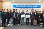 미담타임스 정인화 기자 | 춘천시 환경미화원과 일반공무직의 임금이 인상된다. 육동한 시장은 14일 시청 접견실에서 전국자치단체공무직본부 춘천시지부(지부장 박훈주)와 2025년 임금협약을 체결했다. 주요 협약 내용으로는 △일반공무직 본봉 및 정근수당 지급률 인상 △환경공무직 본봉 3.0% 인상 △환경공무직 조장수당 신설 △민원수당 지급 대상 추가 등이 담겼다. 노사 양측은 지난 7월부터 7차례 교섭을 통해 이같은 내용을 담은 임급협약에 최종 합의했다. 적용 대상은 비조합원까지 포함한 전체 공무직 근로자로 2025년 소급분은 11월 안으로 지급한다. 일반공무직의 경우 본봉 1.7% 인상과 정근수당 지급률 인상을 통해 본봉 3.15% 인상이 되는 효과가 있다. 육동한 춘천시장은 “이번 임금 인상이 근로자의 사기 진작과 안정적인 근무 환경 조성으로 이어지길 바란다”고 말했다.