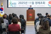 미담타임스 김교환 기자 | 합천군은 지난 4일 군청 대회의실에서 공직자 100여 명이 참석한 가운데 2025년 11월 정례조회를 개최했다. 이번 정례조회에서는 △제12회 행복농촌만들기 콘테스트 유공 △2025년 치매극복의 날 유공 △행복동행 사회복지공무원 가족 유공 △2025년 청년 활동 유공 △2025년 양성평등주간 기념 유공 △제20회 임산부의 날 유공 등 국도정 및 군정 유공 공무원과 군민 16명에게 표창장이 수여됐다. 또한 2025년 상반기 적극행정 우수공무원으로 선정된 안전총괄과 이정일 재해복구T/F계장이‘민원中心, 현장中心’이라는 주제로 적극행정 직접 실천 사례를 발표하며 적극행정 마인드를 공유하는 시간을 가졌다. 김윤철 군수는 “작은 일이라도 군민의 입장에서 먼저 생각하고 적극적으로 실천하는 공직문화가 정착될 수 있도록 함께 노력해 달라”고 당부했으며, “다가오는 연말에는 각종 행사와 예산 마무리 등으로 업무가 많아질 시기인 만큼 소통과 협력으로 군정 목표를 차질 없이 추진해 나가자”고 강조했다.