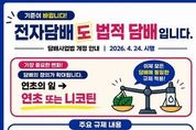미담타임스 김준완 기자 | 포항시는 개정된 담배사업법 시행에 따라 액상형 전자담배가 공식적인 규제 대상에 포함됐음을 알리고, 금연구역 내 흡연 금지 준수를 당부했다. 이번 법 개정으로 기존 ‘연초의 잎’을 원료로 한 제품으로 한정됐던 담배의 정의가 ‘연초 또는 니코틴’을 원료로 제조된 제품까지 확대됐다. 이에 따라 액상형 전자담배도 일반 담배와 동일하게 금연구역에서 사용이 금지된다. 오는 24일부터는 모든 금연구역에서 궐련뿐 아니라 궐련형·액상형 전자담배 등 모든 종류의 담배 사용이 전면 금지되며, 위반 시 ‘국민건강증진법’ 및 지자체 관련 조례에 따라 과태료가 부과된다. 포항시 남·북구보건소는 제도 시행 초기 시민 혼란을 줄이기 위해 오는 24일부터 5월 15일까지 3주간 집중 홍보와 단속을 병행할 계획이다. 이 기간 동안 금연구역 내 전자담배 사용 여부에 대한 점검을 강화할 방침이다. 포항시 보건소 관계자는 “액상형 전자담배도 금연구역에서 사용할 수 없는 담배 제품에 해당된다”며 “시민들이 개정된 제도를 숙지하고 준수해 주길 바란다”고 말했다.