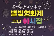 미담타임스 정인화 기자 | 홍천군은 10월 15일부터 18일까지 매일 저녁 6시, 홍천중앙시장 옥상 정원에서 가을밤의 낭만이 가득한 ‘별빛영화제 그리고 야시장’을 개최한다고 밝혔다. 이번 행사는 홍천전통시장 활성화를 위해 마련된 문화형 야시장 프로그램으로, 별빛 아래에서 영화와 먹거리를 동시에 즐길 수 있는 특별한 야외 페스티벌이다. ‘별빛영화제 그리고 야시장’에서는 ▲15일 서울의 봄, ▲16일 베테랑 2, ▲17일 소방관, ▲18일 히트맨 2가 상영된다. 매일 저녁 6시부터 6시 40분까지는 프리 공연으로 가수 이진, 홍지나, 그리고 하모니카 동호회 한옥타브, 하모홀릭이 무대에 올라 감미로운 음악으로 영화제의 분위기를 한껏 끌어올린다. 공연이 끝난 뒤에는 6시 40분부터 본격적인 영화 상영이 시작되어, 가을 저녁의 감성과 함께 다채로운 즐거움을 선사한다. 영화 관람과 함께 즐길 수 있는 야시장 먹거리도 풍성하게 준비됐다. 홍천중앙시장 상인회가 직접 운영하는 부스에서는 어묵, 떡볶이, 닭강정, 튀김 등 시장표 간식은 물론, 시원한 음료와 간단한 주류까지 마련되어 관람객들의 오감을 만족시킬 예정이다