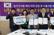미담타임스 정인화 기자 | 전라남도 나주시가 캐나다 현지 대형 유통업체와 손잡고 지역 농수산식품의 글로벌 수출 확대에 나섰다. 나주시는 지난 24일 전라남도 농업기술원에서 캐나다 A-Mart와 500만 달러 규모의 농수산식품 수출 업무협약(MOU)을 체결했다고 27일 밝혔다. 최병화 대표는 나주 출신으로 2007년 캐나다 캘거리에서 아시아 식품 전문 유통업체를 설립해 현재 3개 매장을 운영하고 있다. 이번 협약은 ‘2025 국제농업박람회’ 기간 중 진행됐으며 윤병태 나주시장과 최병화 대표, 나주 수출업체 골든힐 한문철 대표가 참석해 나주 농수산물의 캐나다 수출 확대와 상호 협력을 약속했다. 앞서 시는 토론토 팬아시아푸드와의 협약에 이어 두 번째 캐나다 진출 성과를 거뒀으며 올해 9월 기준 캐나다로 약 366톤의 농수산물을 수출했다. 이번 협약으로 미주 지역 내 나주 농수산식품의 수출 기반이 한층 강화될 것으로 기대된다. 윤병태 나주시장은 “이번 협약은 나주 농산물의 글로벌 경쟁력을 높이는 중요한 계기”라며 “해외 판로를 다각화해 지역 농가의 실질적인 소득 증가로 이어지도록