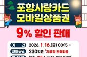 미담타임스 김준완 기자 | 포항시는 오는 16일부터 2026년 카드형·모바일 포항사랑상품권(이하 포항사랑카드)의 첫 할인판매를 시작한다. 이번 할인판매는 연초 민생경제 회복과 활력 제고를 위해 선제적으로 마련됐으며, 230억 원 규모로 9% 할인 판매로 진행된다. 지역 골목상권과 전통시장에 활력을 불어넣을 수 있기를 기대하고 있다. 시는 올해 포항사랑상품권 발행 규모를 지난해 대비 500억 원을 확대해 총 3,500억 원을 발행하고, 상시(매월)는 포항사랑카드 9% 할인, 명절에는 포항사랑카드와 지류형 상품권을 10% 특별할인 판매한다. 상시 할인율은 지난해 상반기 7%보다 2% 더 혜택을 높였으며, 구매한도를 50만 원에서 40만 원으로 하향 조정해 보다 많은 시민들이 가계 혜택을 볼 수 있게 했다. 포항사랑카드 개인 구매한도는 40만 원이며, 보유한도는 70만 원이다. 시는 포항사랑상품권 발행으로 시민들과 소상공인 모두가 실질적인 혜택을 체감할 수 있도록 지역경제 선순환 구조를 한층 더 강화하고 연중 민생경제 회복에 힘 쏟는다는 방침이다. 이번에 진행하는 할인판매는