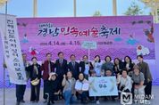 미담타임스 황명수 기자 | 경상남도는 14일부터 15일까지 창원 용지문화공원에서 열린 ‘제43회 경남민속예술축제’를 성황리에 마무리했다고 밝혔다. 올해로 43회를 맞은 경남민속예술축제는 도내 최대 규모의 민속 경연 대회로, 창원·통영·사천 등 10개 시군 대표팀 381명이 참가했다. 참가팀은 농악, 민요, 민속놀이 등 지역 고유의 특색이 담긴 10개 작품을 선보이며 전통문화의 멋과 흥을 펼쳤다. 행사 첫날인 14일에는 전년도 최우수팀인 고성농악과 우수 팀인 창녕 시무구지놀이가 축하 시연을 펼쳐 관람객 300여 명의 큰 호응을 얻으며 축제 분위기를 한층 끌어올렸다. 축제가 마무리되는 15일에는 시상식이 열려 경남 전통예술의 우위를 가렸다. 최우수상은 함안군 함안화천농악보존회가 수상했다. ▲(우수상) 창원시 연도여자상여소리전통상례보존회 ▲(금상) 거제시 살방깨발소리보존회 ▲(은상) 합천군 합천밤마리오광대 ▲(동상) 통영시 통영통제영농악보존회. 사천시 사천적구놀이보존회 ▲(장려상) 산청군 산청매구보존회, 의령군 의령집돌금농악단, 양산시 양산농악연구보존회가 각각 수상의 영예를 안았다. 이번 대회 최우수팀은