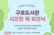 미담타임스 남혜영 기자 | 부산광역시립구포도서관은 도서관 주간을 맞아 오는 18일과 19일 이틀간 도서관 앞 온빛광장에서 도서관 이용자를 대상으로 이색 대출 서비스 ‘시크릿 북 피크닉’을 운영한다. 이번 행사는 이용자들에게 색다른 독서 경험을 제공하고 도서관 이용에 대한 흥미를 높여 책 읽는 문화를 확산하기 위해 마련했다. 참여자는 도서관 2층 문적원2에서 ‘시크릿 북 피크닉 세트’를 대여한 후 온빛광장에서 자유롭게 독서를 즐길 수 있다. 세트는 피크닉 바구니, 돗자리, 접이식 테이블 및 의자, 필사 체험용 키트와 시크릿 북 2권으로 구성되어 별도의 준비 없이도 야외 독서를 편리하게 체험할 수 있도록 했다. 특히 세트에 포함된 도서는 제목과 저자 대신 10가지 키워드만 제시하여, 이용자가 자신의 취향에 맞는 키워드를 선택해 예상치 못한 책을 만나는 즐거움과 새로운 독서 경험을 제공한다. 행사 운영 시간은 오전 10시부터 오후 4시까지이며, 하루 10팀을 대상으로 운영한다. 자세한 사항은 구포도서관 문적원2로 문의하면 된다. 신미향 구포도서관장은 도서관 앞 온빛