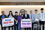 미담타임스 정주환 기자 | 인천 동구장애인체육회는 지난 14일 제7회 인천광역시장애인생활체육대회 입상 선수 및 제45회 전국장애인체육대회 출전선수를 초대해 격려금을 지급했다고 밝혔다. 이날 행사는 지난 인천시 장애인생활체육대회 탁구 종목에서 금메달과 동메달을 딴 선수들의 노고를 치하하고, 전국장애인체육대회에 출전하는 선수들을 격려하기 위해 마련됐다. 김찬진 동구청장은 우수한 성적으로 입상한 선수와 전국장애인체육대회 출전하는 선수에게 격려와 응원의 메시지를 전달했다. 김찬진 동구청장은 “장애를 딛고 끊임없이 도전하는 선수의 열정과 노력이 자랑스럽다”며 “동구 장애인 체육활성화를 위해 적극 지원하겠다”고 말했다. 한편, 동구장애인체육회는 지역 장애인들이 체육을 통해 건강한 삶을 누릴 수 있도록 장애학생 대상 여름방학 체육활동, 장애인 탁구 교실, 수영교실, 파크골프 등의 프로그램을 운영중에 있으며 앞으로도 다양한 종목의 생활체육 프로그램과 체육 활동을 지원할 예정이다.