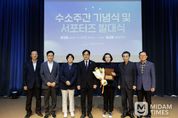 미담타임스 김준완 기자 | 제주특별자치도가 ‘수소 주간(11월 3~7일)’을 맞아 수소경제에 대한 도민 공감대 확산에 집중했다. 그린수소 서포터즈 발대부터 현장 투어까지 다양한 행사를 열고 그린수소를 일상으로 끌어들이는 작업에 속도를 냈다. 제주도는 6일 제주문학관에서 ‘수소 주간 기념식’을 열고 그린수소 확산을 위한 민관 협력 체계를 구축했다. 법정기념일인 수소의 날(11월 2일)이 포함된 한 주를 ‘수소 주간’으로 지정해 지난해부터 도민 대상 수소에너지 홍보에 나서왔다.. 올해 기념식에는 대학, 민간단체, 마을 등 각계각층에서 100여 명이 참석했으며, 에너지 대전환 영상 상영을 시작으로 축하공연, 유공자 시상, 그린수소 서포터즈 발대식이 진행됐다. 기념식에서 수소경제 발전에 기여한 유공자를 시상했다. 개인 부문에서 김상재 그린수소 글로컬 선도연구센터장은 그린수소 기술 연구와 인재양성에 크게 기여한 공로를, 김정현 서귀포시 생활환경과 주무관은 도내 최초로 수소 청소차를 성공적으로 도입·운영한 공로를 인정받아 표창을 받았다. 단체 부문에서는 제주도 관광협회와 북촌리 새마을