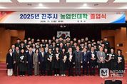 미담타임스 김교환 기자 | 진주시는 3일 시청 시민홀에서 ‘2025년도 농업인대학 졸업식’을 개최하고 전문농업인 146명을 배출했다고 밝혔다. 지난 3월 입학식을 시작으로 개강한 농업인대학은 △시설딸기 △시설고추 △블루베리 △작물생리 등 4개 과정으로 운영됐으며, 과정별 전문 강사진을 구성해 8개월 동안 이론과 현장교육, 실습, 우수농가 벤치마킹 등 총 100시간의 체계적인 교육을 진행했다. 교육생들의 적극적인 참여와 뜨거운 호응 속에 교육이 성공적으로 마무리됐으며, 전체 교육생의 92%가 수료하는 높은 성과를 거뒀다. 이날 졸업식에서는 교육과정 중 모범적으로 활동한 평거동 이창근 씨 외 3명이 공로상을 받았으며, 과정별 교육 평가에서 우수한 성적을 거둔 수곡면 김영옥 씨 외 7명이 성적우수상을, 성실히 교육에 참여한 대곡면 권오훈 씨 외 26명이 개근상을 수상했다. 조규일 진주시장은 “올여름 이상고온과 강한 햇볕으로 인한 일소피해와 집중호우 피해로 농업에 많은 어려움이 있었지만, 전문농업인이 되기 위해 농업인대학 교육을 끝까지 이수한 졸업생 모두 진심으로 축하드린다”며 “대학에서 배운 지식과 경험