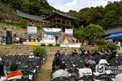 미담타임스 김준완 기자 | 영주시는 지난 25일 세계유산 부석사 범종각 특설무대에서 의상대사 탄신 1400주년을 기념한 ‘부석사 화엄음악회 '무량음'’을 성황리에 개최했다. 이번 행사는 우리나라 화엄종의 개조이자 부석사 창건주인 의상대사의 탄신 1400주년을 기리는 뜻깊은 자리로, 그의 사상적 유산을 재조명하고 화엄사상의 현대적 가치와 의미를 되새기기 위해 마련됐다. 행사는 의상대사 헌다례 법요식으로 막을 올렸다. 개회와 입재를 시작으로 싱잉볼 연주와 향·등·화·미·과·다의 육법공양, 그리고 회향 순으로 엄숙하게 진행됐다. 헌다례는 의상대사에 대한 공경과 감사의 마음을 표현하고, 화엄의 정신을 다시 새기는 의미 깊은 의식이었다. 이어진 ‘의상 화엄 다르마 토크콘서트’는 ‘산사에서 찾는 마음의 평화’를 주제로 진행됐다. 이날 토크콘서트는 대한불교조계종 제4교구 본사 월정사 교무국장 자현스님이 이끌었으며, 현대적 언어로 불교 철학과 현대인의 삶을 연결해 대중과 소통하는 깊이 있는 강연이 펼쳐졌다. 저녁 6시부터는 ‘무량음無量音’을 주제로 한 음악회가 진행됐다. 첫 무대는 국악실내악단 공연으