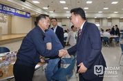 미담타임스 정인화 기자 | 이범석 청주시장은 29일 임시청사 직지실에서 제106회 전국체육대회 출전을 앞두고 있는 직장운동경기부 선수단 감독들을 만나 격려했다. 오는 10월 17일부터 23일까지 부산광역시 아시아드주경기장을 포함한 82개 경기장에서 개최되는 전국체육대회에, 청주시 선수단은 총 328명이 27개 종목에 출전한다. 이 중 청주시청 직장운동경기부는 8개 부문*에 50명의 선수가 출전해 청주시의 위상을 드높일 예정이다. 감독들로부터 출전보고를 받은 이범석 시장은 “선수 여러분의 열정과 땀은 이미 청주시의 자랑”이라며 “이번 전국체전에서도 자신감을 갖고 그동안 갈고닦은 실력을 마음껏 펼쳐주시길 바란다. 청주시민들과 함께 여러분을 응원하겠다”고 따뜻한 격려와 응원의 메시지를 전했다.