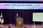 미담타임스 김교환 기자 | 거창군 귀농귀촌인 연합회는 지난 9일 농업기술센터 미래농업복합교육관에서 정기총회를 열었다. 이날 총회에서는 많은 임원과 회원들이 참석한 가운데, 제7대 엄시현 회장에 이어 주상면 김귀도(前연합회 부회장)씨가 신임 회장으로 선출됐다. 이번 총회에서는 회장 선출과 더불어 지난 한 해 동안의 활동 성과를 되짚고, 2026년 연합회 운영 방향과 귀농귀촌 활성화를 위한 중점 과제 등에 대한 논의도 진행됐다. 김귀도 신임 회장은 “귀농귀촌인들의 지역 정착과 공동체 활성화를 위해 더욱 노력하겠다”며 “앞으로 연합회의 다양한 사업과 프로그램 추진에 힘쓰고, 귀농귀촌인들이 지역사회에서 안정적으로 살아갈 수 있도록 최선을 다하겠다”고 포부를 밝혔다. 앞으로도 거창군 귀농귀촌인 연합회는 귀농귀촌 회원들과 함께 영농기술 공유, 안정적 정착 지원, 지역사회와 함께하는 프로그램 확대 등 다양한 활동을 통해 귀농·귀촌인들의 삶의 질 향상과 농촌 지역 활성화에 기여할 계획이다.