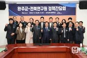 미담타임스 정인화 기자 | 완주군과 전북 싱크탱크인 전북연구원이 18일 오후 완주군청에서 유 군수와 장 원장대행을 포함한 주요 관계자 20여 명이 참석한 가운데 ‘완주군-전북연구원 정책간담회’를 열었다. 이번 간담회는 완주군의 주요 현안사업을 전북연구원과 함께 논의하며 최적의 대응 방안을 모색하기 위해 마련됐다. 이날 주요 안건은 ▲피지컬AI 산업 육성 및 활성화 전략 ▲피지컬 AI 및 2차 공공기관 이전 부지 입지 검토 ▲경관조성을 통한 관광·축제 활성화 방안 ▲완주군 외국인 정책 운영 방향 등으로 양 기관은 안건별 주요 쟁점, 대응 방향 및 계획 등에 대해 심도 있는 토론을 진행했다. 유희태 군수는 “이번 간담회는 군과 연구원의 상시 협력체계를 더욱 공고히 할 수 있는 기회”라며, “피지컬 AI와 관광·축제 활성화 등 군정 주요 현안 대응과 신성장 동력 발굴 등을 위해 앞으로도 전북연구원과 긴밀히 소통하며 협력해 나가겠다”고 말했다. 장성화 대행은 “완주군은 전북 신산업 발전을 선도하는 전진기지”라고 말하며, “완주군이 전북 경제의 중심도시로 도약할 수 있도록 적극적으로 지원하고 기관 간 협업을