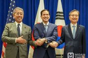 미담타임스 정주환 기자 | 제80차 유엔총회 고위급 회기 참석 차 뉴욕을 방문중인 조현 장관은 마르코 루비오(Marco Rubio) 미국 국무장관 및 이와야 다케시(岩屋毅) 일본 외무대신과 9월 22일 한미일 외교장관회의를 갖고, 한반도 및 지역 현안과 한미일 3국 간 경제안보 협력 증진 방안 등에 대해 논의하고 공동성명을 채택했다. 조 장관은 올해 한미일 장관급 회의만 4번째 개최되는 등 한미일 협력 의지가 그 어느 때보다 강할 때 취임 후 처음으로 한미일 외교장관회의에 참석하게 되어 뜻 깊게 생각한다고 하고, 역내 문제 및 경제안보 협력 등 다양한 분야에서 각급 정책공조 증진에 유용한 틀이라고 평가했다. 루비오 장관과 이와야 대신도 조 장관의 참석을 환영하고, 역내 평화, 안정, 번영을 위한 한미일 협력을 더욱 강화해나가는데 뜻을 모았다. 3국 장관들은 그간 한미일 안보협력, 사이버 대응 공조 등 그간의 성과를 평가하고, 한반도 비핵화 원칙과 대북 억제 태세를 견지하는 가운데 대북정책 관련 긴밀한 공조를 유지해 나가기로 했다. 조 장관은 대북 대화 재개를 비롯하여 한반도 평화와 북핵문제 해결의 실질적인 진전을 위해 적극