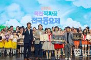 미담타임스 정인화 기자 | 지난 26일, 옥천 문화예술회관에서 ‘제17회 옥천짝짜꿍 전국 동요제’가 개최됐다. ‘짝짜꿍 동요제’는 정순철 기념사업회가 주최하고, 7월 1일 열린 옥천지역 예선을 통해 선발된 4팀과 전국에서 우편·영상 등으로 응모한 참가자 중 선정된 9팀까지 총 13개 팀이 본선 무대에 올랐다. 이번 전국동요제에서 대상은 성남미금초 금빛물결중창단으로 이날 금빛물결중창단은 13팀 중 여덟번째 순서로 무대 위에 올라 ‘옹기가 뚝딱’ 곡을 동요다운 투명하고 맑은 목소리와 귀엽고 아기자기한 구성으로 영예로운 대상을 차지하며 상금과 함께 충청북도지사 상을 받았다. 정순철기념사업회는 일제강점기에도 색동회 회원으로 어린이 사랑운동을 이끌며 많은 동요를 작곡하신 정순철 선생의 뜻을 모아 지난 2008년부터 매년 동요제를 열고 있다. 이번 대회는 추후 MBC충북을 통해 방송될 예정이다. 황규철 옥천군수는 “전국의 어린이들이 옥천에 모여 아름다운 동요로 꿈과 끼를 마음껏 펼칠 수 있어 매우 뜻깊은 자리였다”며“앞으로도 어린이들이 마음껏 재능을 발휘하고 성장할 수 있는 문화예술의 장을 지속적