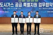 미담타임스 정인화 기자 | 당진시는 13일 충남도청 대회의실에서 충청남도, 미래앤서해에너지와 함께 도시가스 공급 특별지원 업무협약(MOU)을 체결했다고 밝혔다. 협약식에는 오성환 당진시장을 비롯해 김태흠 충남도지사, 이완섭 서산시장, 송민섭 미래엔서해에너지 대표가 참석했다. 이번 협약은 도시가스 공급 취약지역 주민의 에너지 복지 실현과 지역 간 에너지 격차 해소를 위해 행정, 기업과 지역사회가 함께 만들어낸 협력의 결과로, 협약에 따라 ▲정미·채운 지역 도시가스 배관 설치를 위한 특별지원금 확보 ▲2027년까지 배관 공사 완료 등이 추진될 예정이다. 정미면과 채운동에는 각각 2.89km, 2.8km의 도시가스 배관이 설치돼 정미면 126세대, 채운동 82세대가 혜택을 보게 된다. 현재 당진시 도시가스 보급률은 93%로 도내에서도 높은 수준이지만, 정미면은 보급이 전혀 없어 에너지 복지의 실질적 사각지대로 꼽혔다. 채운1통 역시 인근 아파트까지는 예전부터 도시가스가 공급됐으나 나머지 지역은 경제성 문제로 제외돼 주민들의 상실감과 소외감이 컸다. 시는 이번 협약으로 주민들의 오
