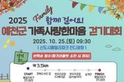 미담타임스 김준완 기자 | 예천군에서는 오는 25일 오전 9시 30분부터 호명읍 신도시패밀리파크 잔디광장에서 ‘2025 예천군 가족사랑한마음 걷기대회’ 가 열린다. 예천군체육회가 주최·주관하고 예천군이 후원하는 이번 걷기 행사는 패밀리파크 잔디광장에서 출발해 범우리공원과 실개천을 거쳐 다시 패밀리파크 잔디광장으로 돌아오는 약 3.5km 코스로 진행된다. 참가 제한이나 별도 신청 없이 누구나 행사 당일 오전 9시 30분까지 행사장을 찾아 현장 접수하면 되며, 선착순으로 진행되는 접수는 참가 리플릿이 소진되면 마감된다. 걷기 코스 완주와 더불어 참가 리플릿을 활용한 스탬프 미션에 성공한 모든 참가자에게 완보기념품이 증정되고 인생네컷 가족사진 만들기 및 놀이체험 부스 운영, 댄스공연 및 버블쇼 등 풍성한 프로그램도 준비되어 있다. 또한 걷기 코스 안에 댄스존, 비누방울존, 어린이보물찾기존 등 다양한 이벤트존이 마련되어 있어 걷는 즐거움을 배가시키고, 행사 막바지에는 푸짐한 경품추첨도 예정되어 있다. 이철우 예천군체육회장은 “이번 대회가 가족 사랑과 건강을 되새기고, 지역 주민 간 더욱 친밀한