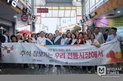 미담타임스 정인화 기자 | 천안시의회는 민족 대명절인 추석을 앞두고 10월 2일 중앙시장을 찾아 시민과 상인들에게 따뜻한 인사를 전하며 명절 분위기를 함께 나누었다. 이번 방문은 경기 침체와 물가 상승으로 어려움을 겪고 있는 전통시장 상인들과 시민들의 노고를 살피고, 격려하며 명절의 정을 나누기 위해 김태흠 충남도지사와 김석필 천안시장 권한대행과 함께 하는 자리로 마련됐다. 김행금 의장을 비롯 △이종만 복지문화위원장, △강성기 경제산업위원장, △정도희 의원, △권오중 의원 등은 전통시장을 돌며 상인들의 애로사항을 청취하고, 제수용품을 직접 구매하며 전통시장 활성화에 동참했다. 특히 지역 상권을 살리고 서민 경제에 활력을 불어넣기 위해 ‘전통시장 이용’의 중요성을 강조했다. 김행금 의장은 “전통시장은 지역 공동체의 뿌리이자 시민과 함께하는 생활 공간”이라며 “추석 명절을 맞아 시민 모두가 따뜻하고 넉넉한 정을 나누고, 전통시장이 활기를 되찾을 수 있도록 의회 차원에서도 지속적으로 관심과 지원을 이어가겠다”고 말했다. 천안시의회는 앞으로도 민생 현장을 지속적으로 찾아 시민 목소리에 귀 기울이고, 지역경