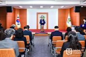 미담타임스 김교환 기자 | 함안군은 지난 3일 군청 3층 대회의실에서 조근제 함안군수 주재로 11월 정례조회를 개최했다고 밝혔다. 이날 조회에서는 군민 으뜸상, 우수기업인상, 모범근로자상, 장사업무 유공, 감염병 예방 유공, 화랑훈련 유공, 친절공무원상 등 각 분야에서 헌신한 직원과 군민에 대한 시상이 진행됐다. 조 군수는 “지역 발전을 위해 봉사와 헌신을 아끼지 않은 수상자 여러분께 감사드린다”며 “앞으로도 군민이 체감할 수 있는 군정을 위해 최선을 다해달라”고 축하와 격려의 뜻을 전했다. 또한 지난주 열린 경상남도생활대축전과 함안애복지박람회의 성공적 개최에 기여한 관련 부서와 단체에도 감사를 전하며, “두 행사가 군민의 참여와 협력 속에 잘 마무리됐다”고 말했다. 또한 가을철은 건조한 날씨와 영농활동에 의해 산불 위험이 높아지는 시기로 산불예방에 총력을 기울여 달라고 당부했다. 최근 이상기후로 고온현상과 건조 일수가 늘어나면서 산불 발생이 연중화·대형화되는 추세임을 지적하고 “우리 군은 11월부터 이듬해 5월까지를 산불예방 집중기간으로 정해 운영하고 있다. 산불방지대책본부를 중심으로
