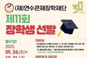 미담타임스 정주환 기자 | (재)연수큰재장학재단은 미래 지역사회를 이끌어 갈 우수 인재 발굴과 양성을 위해 제11회 장학생을 선발한다. 이번 장학생은 ▲복지, ▲특기(개인), ▲특기(단체), ▲연수꿈응원, ▲학업우수, ▲연수큰재(다년간) 등 총 6개 분야에서 지원자를 모집하며, 지원 규모는 약 1억 8천만 원에 달한다. 특히 올해는 장학생 지원 기준을 개선하고 추천권자를 조정하는 등 예년에 비해 보다 폭넓은 학생들에게 기회를 제공하는 방향으로 개편됐다. 선발 절차는 ▲공고 및 접수(9월 24일~10월 31일), ▲서류심사, ▲연수큰재(다년간) 면접 심사 및 선발 심의위원회 심의, ▲재단 이사회 최종 확정 순으로 진행된다. 선발 결과는 11월 말에 발표할 예정으로 자세한 사항은 연수구청 누리집 공고문을 통해 확인할 수 있다. 이재호 연수구청장은 “연수큰재장학재단은 미래 꿈나무들이 자신의 꿈을 마음껏 펼칠 수 있도록 지원하고 있다.”라며 “앞으로도 내실 있는 다양한 장학사업을 통해 교육 기회의 균등과 인재 양성에 최선을 다하겠다.”라고 말했다.