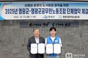 미담타임스 정인화 기자 | 영광군은 지난 10월 13일 군청 2층 소회의실에서 영광군공무원노동조합과 “2025년 단체협약식”을 체결했다. 이번 협약은 공무원 노사 간의 상호 존중과 협력을 바탕으로 △근로시간 면제제도 도입 △적정 인력 관리방안 마련 △기념일 특별휴가 확대 △장례용품 지원 △임산부 및 영유아 자녀를 둔 공무원의 근무환경 보호 등 실질적인 개선안을 담고 있으며, 건전한 노사관계 정립과 협력적 공직문화 조성을 목표로 추진됐다. 영광군은 지난 3개월간 실무교섭과 지속적인 협의를 통해 노사 간 의견을 조율해 왔으며, 이번 단체협약을 통해 공무원의 사기 진작과 일·가정 양립을 위한 유연한 조직 문화 조성에 중점을 두었다고 밝혔다. 영광군수 는 “이번 단체협약은 군정의 동반자로서 노동조합의 의견을 존중하고, 공무원들이 자긍심을 갖고 일할 수 있는 조직문화를 만드는 중요한 계기가 될 것”이라며 “노사가 함께 협력하여 군민에게 신뢰받는 행정을 실현하겠다”라고 말했다. 박종옥 위원장은 “공무원노조는 조합원의 권익 보호는 물론, 군정 발전과 조직문화 개선을 함께 이끌어가는 든든한 파트너가 될 것이며,