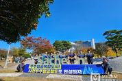 미담타임스 김교환 기자 | 사천시 사천읍 기관장협의회는 10월 31일 사천시청 노을광장에서 10월 정기회의를 개최하고, 회의에 앞서 내년 고시 예정인 '제5차 국가철도망 구축계획'에 ‘사천우주항공 국가철도’ 반영을 촉구하는 캠페인을 전개했다. 이날 기관장협의회 회원들은 ‘사천우주항공철도! 제5차 국가철도망 구축계획에 반영하라’는 구호가 적힌 손현수막을 들고 캠페인을 진행하며 시민들의 관심과 동참을 호소했다. 이번 캠페인은 사천이 대한민국 우주항공 중심도시로 도약하기 위해서는 진주-사천-삼천포를 잇는 사천우주항공선 철도망 구축이 반드시 필요하다는 인식 아래 추진됐다. 기관장협의회 관계자는 “우주항공청 개청과 함께 관련 산업시설 조성이 본격화되는 만큼, 철도망 구축은 우주항공산업의 인력·물류 이동의 핵심 인프라가 될 것”이라며 국가계획 반영의 필요성을 강조했다. 한편, 이날 회의에서는 지역 현안사업 논의와 함께 지역 발전을 위한 협력 방안이 논의됐으며, 기관장들은 앞으로도 사천의 미래 성장 동력 확보를 위해 적극적인 홍보와 캠페인을 이어가기로 했다.