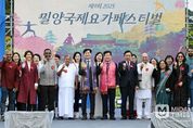 미담타임스 김교환 기자 | 경남 밀양시가 주최하고 밀양시문화도시센터(센터장 장병수)가 주관한 ‘2025년 밀양 국가유산 야행’이 지난 17일부터 19일까지 3일간 영남루와 밀양강 일원에서 성황리에 마쳤다고 밝혔다. 올해로 여섯 번째를 맞은 밀양 국가유산 야행은 제30회 시민의 날 및 경남 무형유산 축제와 함께 열려, 전통과 현대가 어우러진 화합과 소통의 장이 됐다. 이번 야행의 메인 프로그램인 응천 아리랑과 어화 꽃불놀이는 행사를 위해 설치된 뱃다리와 수상 관람석에서 감상할 수 있어 색다른 경험과 감동을 선사했다. 특히 시민의 날 거리 퍼레이드와 연계해 진행된 ‘밀양부사 납시오’는 안병구 시장, 박상웅 국회의원, 도·시의원 등이 관복을 입고 거리를 행진하는 퍼포먼스로 옛 밀양의 모습을 재현해 관람객들에게 큰 호응을 얻었다. 특히 어화 꽃불놀이는 고기잡이를 위해 옛 밀양강(응천강)을 밝히던 고깃배의 등불을 재현한 프로그램으로, 영남루와 밀양강의 야경을 한층 더 아름답게 물들여 관람객들에게 색다른 볼거리를 제공했으며, 양반 뱃놀이 퍼포먼스는 밀양만의 독창적인 문화 콘텐츠로의 발전 가능성을 보여줬다. 이