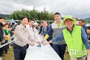 미담타임스 김준완 기자 | 성주군 수륜면 수성리 어울림마당(수성리 104)에서 10. 18.부터 19.까지 이틀간 열린 성주군 가을 대표축제 '2025 성주가야산 황금들녘 메뚜기축제'가 전국 각지의 관광객이 모이며 성황리에 종료됐다. 축제장 진입로에 늘어선 허수아비와 바람개비 행렬은 방문객들을 따스하게 맞이하고 축제장 입구에 펼쳐진 황금빛 들녘은 가을의 풍요로움을 아낌없이 선사한 축제였다. 축제 대표 프로그램인 친환경 농촌체험(메뚜기잡이, 고구마 캐기, 메기잡이, 사과낚시)과 온 가족이 함께하는 가을 운동회, 다양한 체험 부스와 공연은 방문객들에게 풍성한 즐길거리·볼거리를 제공했고, 축산물 무료시식 및 다양한 먹거리들로 방문객들의 입맛까지 사로잡았다는 평이다. 전년에 이어 올해도 무대와 개막식 행사를 없애는 대신 축제장을 방문한 관광객들과 함께 청정 수륜쌀로 만든 가래떡을 길게 뽑으며 모두의 행복과 안녕을 기원하는 ‘한마음 가래떡 뽑기’ 퍼포먼스를 펼쳐 축제장을 찾은 방문객들에게 색다른 재미를 선사했다. 올해는 그동안의 성과에 만족하지 않고 신규 프로그램과 체험을 개발하여 축제를 내실화했다는 점에서