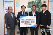미담타임스 정인화 기자 | 어울림 봉사단과 소속 회원사인㈜호연테크(대표 최지원), 코치푸드(대표 배정은), 일이삼한방병원(대표 김일)이 완주군에 총 625만 원 상당의 물품과 성금을 전달했다. 최근 열린 전달식에는 유희태 완주군수를 비롯해 윤현철 어울림 봉사단 회장, 최지원 ㈜호연테크 대표(수석부회장), 배정은 코치푸드 대표(고문), 어울림 봉사단원 등 24명이 함께해 그 의미를 더했다. 후원 내역은 어울림 봉사단 프로폴리스 50개(225만 원 상당), ㈜호연테크 성금 100만 원, 코치푸드 고구마 및 가공품 50상자(150만 원 상당), 일이삼한방병원 건강보조제 50상자(150만 원 상당)다. 기탁된 물품과 성금은 사회복지시설 및 관내 취약계층 가정에 전달됐다. 윤현철 어울림 봉사단 회장은 “회원사 대표들이 함께 뜻을 모아 나눔에 동참해 주셔서 더욱 뜻깊다”며 “앞으로도 지역사회와 함께하는 다양한 활동을 이어가겠다”고 말했다. 유희태 완주군수는 “어울림 봉사단과 회원사 대표님들의 따뜻한 나눔이 지역사회에 큰 울림을 주고 있다”며 “소중한 정성이 어려운 이웃들에게 잘 전달될 수 있도록