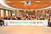 미담타임스 김준완 기자 | 울산 울주군이 27일 군청 문수홀에서 지역 내 의무관리대상 공동주택 입주자대표회의 구성원을 대상으로 ‘공동주택 입주자대표회의 구성원 운영·윤리교육’을 실시했다. 이번 교육은 공동주택관리법상 규정된 법정교육으로, 입주민의 주거생활과 권익을 직접적으로 대변하는 동별 대표자에게 전문적인 지식이나 사례 등을 교육하고자 마련됐다. 이날 중앙공동주택관리지원센터(LH) 소속 전문강사가 교육을 맡아 공동주택관리에 관한 관계법령 및 관리규약, 장기수선계획, 사업자 선정, 공동주택회계처리 등 공동주택 관리업무 전반에 대한 내용을 강의했다. 울주군 관계자는 “이번 교육이 입주민 간 갈등을 예방하고, 투명하고 살기 좋은 공동주택을 만드는 데 도움이 되길 바란다”며 “앞으로 보다 체계적인 교육으로 입주자대표회의의 직무능력 향상과 윤리의식을 고취시키기 위해 노력하겠다”고 말했다.