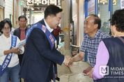 미담타임스 정인화 기자 | 김관영 전북특별자치도지사가 1일 민족 최대 명절 한가위를 앞두고 전주 신중앙시장을 방문해 명절 준비에 나선 상인과 도민들을 격려했다. 이번 장보기 행사는 도민과 상인이 함께 어우러지며 시장 활성화와 함께 지역 공동체에 따뜻한 명절 분위기를 조성하기 위해 마련됐다. 특히 이날은 농림축산식품부 주관 온누리상품권 환급 첫날로, 혜택을 받으려는 도민들의 발길이 이어졌다. 김 지사는 상인들과 간담회를 열어 애로사항을 청취한 뒤, 온누리상품권으로 주요 성수품을 구매하며 명절 물가를 살폈다. 이어 상인들과 악수를 나누며 덕담을 건넸다. 이날 전주시 지역구 도의원들도 시장 곳곳을 누비며 상인과 시민들에게 격려의 메시지를 전했다. 반봉현 신중앙시장 상인회장은 “전주 중심에서 오랜 세월 지역경제를 떠받쳐온 신중앙시장 상인들의 자부심이 대단하다”며 “시장을 찾는 시민들이 웃는 얼굴로 돌아갈 수 있도록 더욱 편리하고 정겨운 시장으로 만들어가겠다”고 말했다. 김관영 전북자치도지사는 “전통시장을 찾는 도민 한 분 한 분의 발걸음이 지역 상인들에게 힘이 되고 지역 경제에도 활력을 불어넣