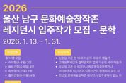 미담타임스 김준완 기자 | 고래문화재단이 운영하는 울산 남구 문화예술창작촌이 2026년도 레지던시 사업에 참여할 입주작가를 1월 13일부터 1월 31일까지 공개 모집한다. 공개모집 분야는 문학, 시각·예술 2개 분야로 문학 분야는 장생포 아트스테이에서 시, 소설, 아동문학, 희곡, 수필 등 다양한 장르의 작가 총 14명에게 4월부터 3개월 단위로 운영한다. 시각예술 분야는 창작스튜디오 131에서 회화, 조각, 사진, 설치, 미디어 등 장르의 예술가 3명에게 3월부터 11월까지 9개월간 작업실과 프로그램 연계 혜택을 지원하게 된다. 특히 올해 문학 분야는 지역에 새로운 문학적 시선을 유입하고 차세대 작가들의 성장 기반을 마련하고자 예비·신진 작가 중심의 모집을 통해 더 많은 청년 창작자들이 창작 활동을 시작하고 지속할 수 있도록 지원 폭을 확대할 예정이다. 고래문화재단은 추후 서류 검토와 인터뷰 심사를 거쳐 최종 입주작가를 선정할 계획이며 선정된 예술가에게는 작업실 제공과 함께 창작지원금, 워크숍 등의 혜택이 주어진다. 모집 접수는 1월 31일 토요일 오후 5시까지 진행되며 신청 서류는