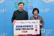미담타임스 김준완 기자 | 한마음새마을금고(이사장 전숙자)는 1월 27일 오후 3시 30분 울산광역시 동구청을 찾아 ‘사랑의 좀도리 운동’으로 모은 700만원 상당의 백미(10kg) 176포대를 전달하며 지역 사회에 온기를 불어넣었다. 이날 전달식에는 전숙자 이사장을 비롯해 김종훈 동구청장 등 관계자들이 참석해 나눔의 의미를 되새겼다. ‘사랑의 좀도리 운동’은 식량이 부족하던 시절 밥을 지을 때 쌀을 한 움큼씩 모아 이웃을 돕던 전통을 계승한 새마을금고의 상징적인 사회공헌 활동이다. 이번에 기탁된 쌀은 한마음새마을금고 임직원과 회원들이 십시일반 정성을 모아 마련됐으며, 동구 지역 내 취약계층 가구에 전달될 예정이다. 전숙자 한마음새마을금고 이사장은 “병오년 새해를 맞아 지역 주민들이 희망찬 시작을 하시길 바라는 마음으로 쌀을 준비했다”며 “앞으로도 서민금융기관으로서 지역사회와 상생하며 사회적 책임을 다하겠다”고 밝혔다. 김종훈 동구청장은 “경제적으로 어려운 시기임에도 불구하고 매년 잊지 않고 이웃을 살펴주시는 한마음새마을금고에 감사드린다”라며 “기탁받은 성품은 도움의 손길이 절실한 이웃