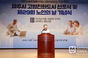 미담타임스 정주환 기자 | 파주시는 지난 14일 파주시민회관 대공연장에서 ‘제29회 노인의 날 기념행사 및 세계보건기구(WHO) 인증 고령친화도시 선포식’을 성황리에 개최하고, 고령사회에 대응하는 파주시 복지정책 방향과 세대 간 공감의 문화를 확산하기 위한 뜻깊은 자리를 마련했다. 이번 행사는 김경일 파주시장을 비롯해 박대성 파주시의회 의장, 경기도 및 파주시의원, 노인 관련 유관기관장 등 400여 명이 참석해 시민 모두가 행복한 고령친화도시를 만들어가겠다는 의지를 다졌다. 이날 행사에서는 노인복지 유공자 54명에 대한 표창 수여와 함께 고령친화도시 선포, 축하공연 등이 이어져 풍성한 볼거리를 선사했다. 김경일 파주시장은 “파주시는 세계보건기구(WHO)로부터 고령친화도시로 공식 인증받은 것을 계기로, 어르신이 존중받고 시민 모두가 행복한 도시를 만들겠다”라며 “앞으로도 노인복지 증진과 세대 통합을 위한 다양한 정책 실현을 통해 파주시민 모두가 ‘파주에 살기를 참 잘했다’라고 말할 수 있도록 최선을 다하겠다”라고 밝혔다. 향후 파주시는 관내 노인 관련 유관단체와 적극 협력하여 어르신의 목소리에 귀 기