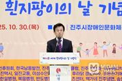미담타임스 김교환 기자 | 경남시각장애인연합회 진주시지회(회장 서창재)는 30일 진주시장애인문화체육센터에서 시각장애인과 가족, 자원봉사자 등 280여 명이 참석한 가운데 ‘제46회 세계 흰 지팡이의 날’ 기념행사를 개최했다. 이날 행사는 흰 지팡이가 시각장애인의 안전한 이동과 자립을 상징한다는 의미를 시민과 공유하고 장애인의 이동권 보장 및 배려문화 확산을 위해 ▲흰 지팡이 헌장 낭독 ▲장애인복지증진 유공자 표창 수여 ▲흰 지팡이 전달식 등의 순으로 진행됐다. 서창재 지회장은 “흰 지팡이를 손에 쥐는 일은 단순한 이동을 의미하는 것이 아니라 세상과 연결되는 첫걸음이다”면서 “시각장애인들의 사회참여와 자립을 위해 더 많은 관심과 응원을 보내주시기를 바란다”고 말했다. 조규일 진주시장은 “오늘 행사가 시민들의 이해와 공감이 확산되는 계기가 되길 바란다”며 “앞으로도 누구나 안전하게 다닐 수 있는 보행환경 조성과 이동권 개선정책을 지속적으로 추진해 장애가 차별이나 불편의 이유가 되지 않는 진주시를 만들기 위해 최선을 다하겠다”고 강조했다. 한편 흰 지팡이는 시각장애인의 자립과 성취를 상징하는 도구로 지난