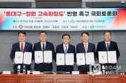 미담타임스 김교환 기자 | 창원특례시는 30일 국회의원회관에서 ‘동대구–창원–가덕도신공항 고속화철도’의 제5차 국가철도망 구축계획 반영을 위해 추진 중인 범시민 서명운동(10.17.~11.16.)과 연계해, 사업 추진에 대한 공감대 확산을 위해 ‘동대구–창원 고속화철도 반영 촉구 국회토론회’를 개최했다. 이번 토론회는 윤한홍, 최형두, 김종양, 이종욱, 허성무 국회의원이 공동으로 주최하고 창원특례시가 주관해 ‘동대구-창원-가덕도신공항 고속화철도’의 필요성을 적극 알리고, 사업의 신속한 추진을 촉구하는 창원특례시민의 염원을 하나로 모으기 위해 마련됐다. 창원특례시 국회의원 5명은 “대한민국의 지속가능한 발전은 수도권과 비수도권이 균형 있게 성장하는 데서 시작된다”라며, ‘동대구–창원 고속화철도’가 그 목표를 달성하기 위한 핵심 사업임을 강조했다. 이어, “제5차 국가철도망 구축계획에 이 사업을 반드시 반영하고 조속히 추진할 것”을 한목소리로 강력히 촉구했다. 이날 행사에서는 ‘동대구-창원 고속화철도 반영 촉구 서명식’과 조속한 사업 추진을 염원하는 ‘피켓 세리머니’가 함께 진행되어, 참석자 모두가
