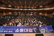 미담타임스 김준완 기자 | 경북교육청은 14일 영천시에 있는 영천시민회관 스타홀에서 ‘청도·영천교육 소통대길 톡’ 행사를 개최했다고 밝혔다. 이번 행사는 ‘따뜻한 경북교육, 세계교육 표준으로’를 주제로 청도와 영천 지역의 교육 현안과 정책 방향을 함께 논의하고, 지역 교육공동체와의 소통을 강화하기 위해 마련됐다. 행사에는 임종식 경북교육감을 비롯해 이춘우·윤승오 경북도의원과 최기문 영천시장, 배수예·이영우·우애자·이영기·이갑균 영천시의회 의원 등 지역 주요 인사와 더불어 교장협의회·학부모회·학교운영위원회·학생상담자원봉사자회, 학부모, 학생, 지역 주민 등 320여 명이 참석하여 역대 최대 규모로 진행됐다. 청도·영천교육의 협력과 도약 청도교육지원청 오홍현 교육장은 ‘그린스마트 미래학교 조성 사업(청도중앙초등학교)’과 ‘소규모 옥외체육관 증축(각남초등학교)’ 등 학생 중심의 안전하고 쾌적한 학습 환경 조성 사업을 소개했다. 영천교육지원청 신봉자 교육장은 ‘영천고 자율형 공립고 2.0 전환’, ‘학교 통폐합’, ‘지속 가능한 교육생태계 구축’ 등 주요 현안을 보고하며, 특히 영천영어타운의